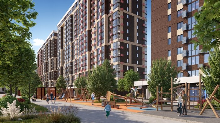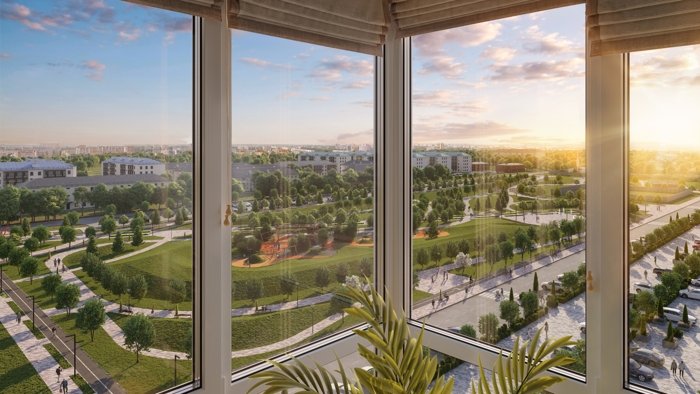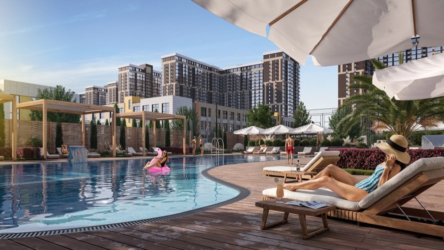 Вместо плотной застройки вокруг дома вы получаете большой парк с аллеями для прогулок, фонтанами, амфитеатром, детскими городками, скейт-парком и спортивными зонами. Утренний кофе на скамейке среди зелени, вечерние прогулки с детьми и пробежки по кругу парка становятся обычной частью вашего дня. Такое сочетание городской жизни и парковой атмосферы редко встречается даже в столичных проектах.