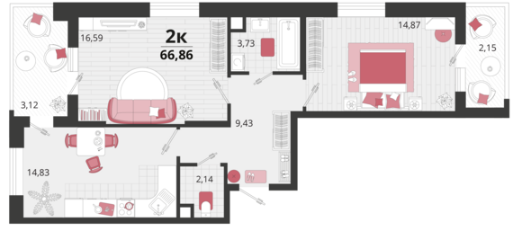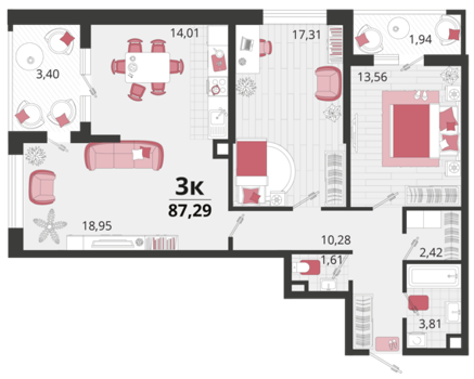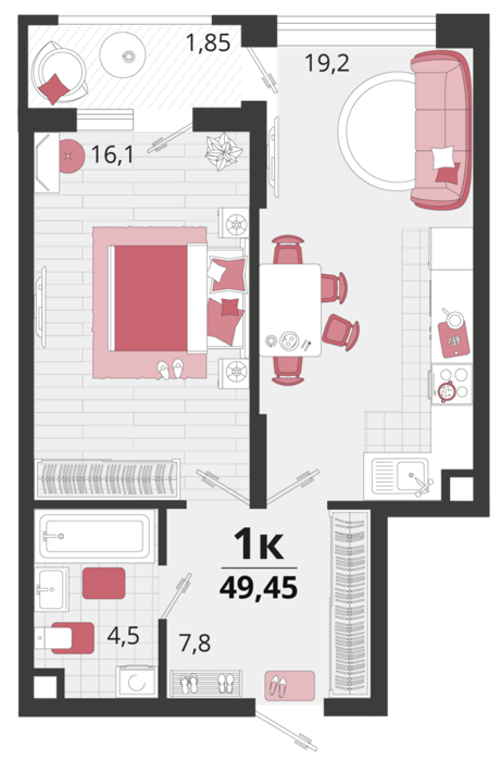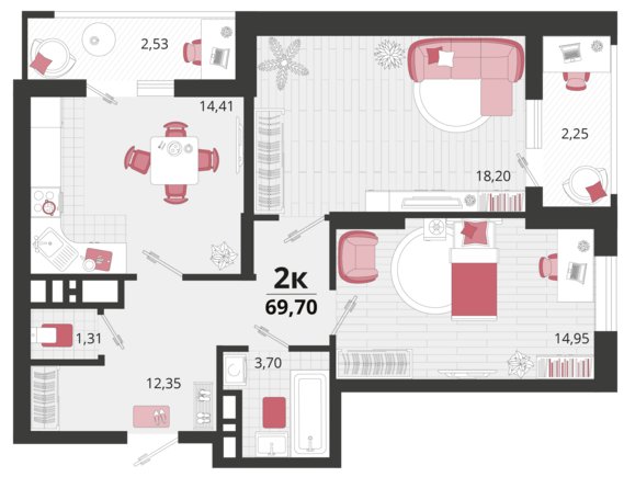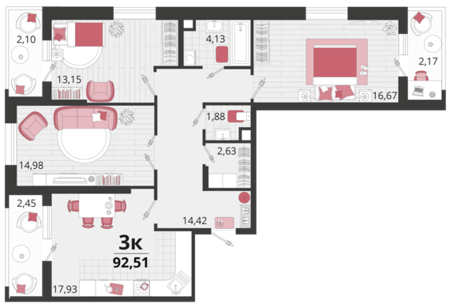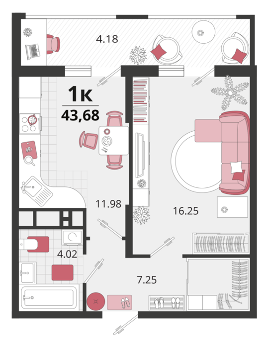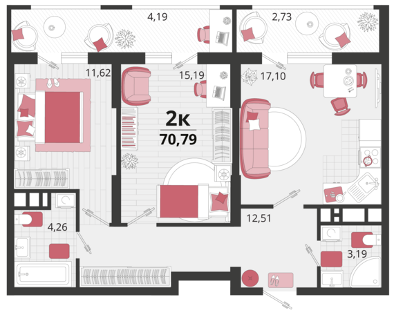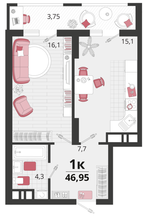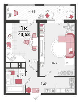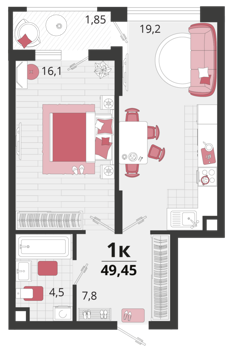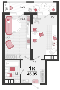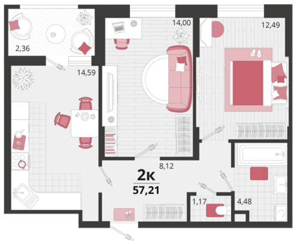 Площадь от 41.7 м2
