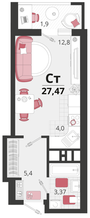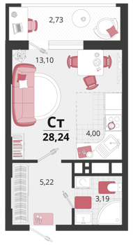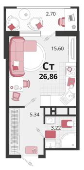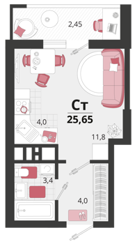 Площадь от 25.6 м2