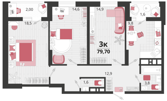 Площадь от 78.5 м2
