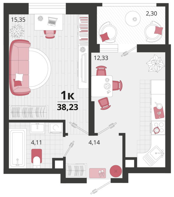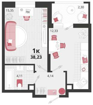 Площадь от 33.3 м2